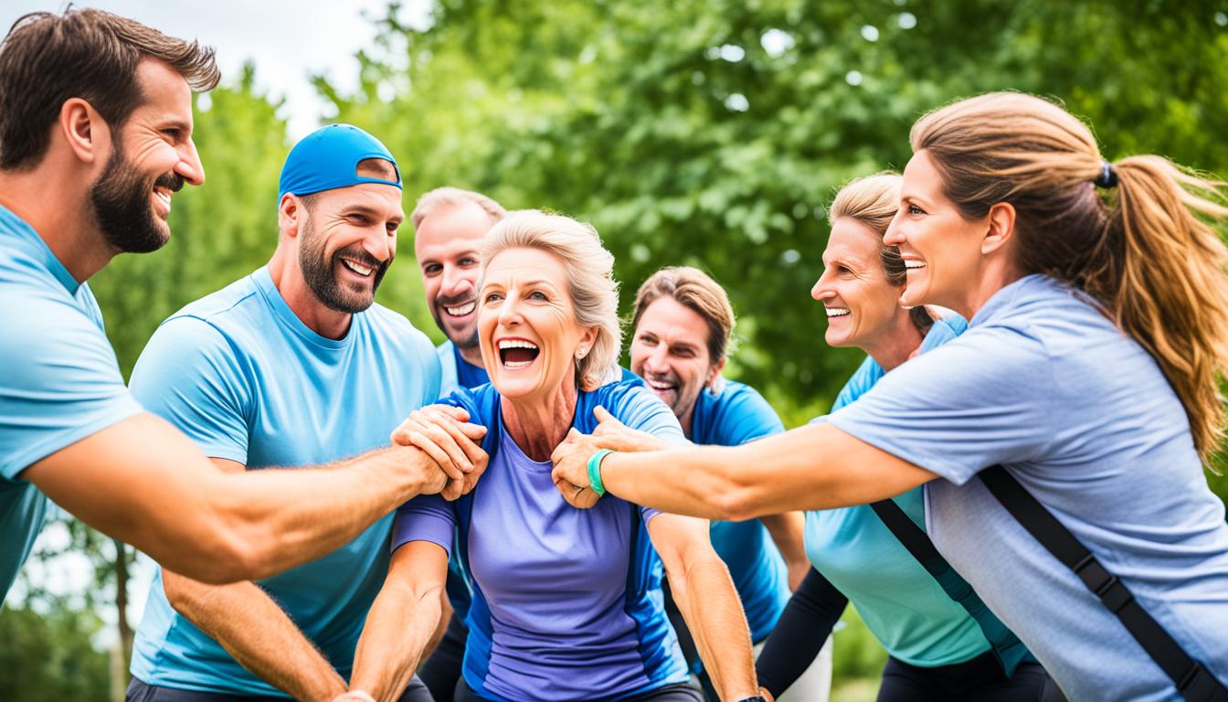In today’s fast-paced work life, it’s key to add activities that help with stress and balance. This part will show you team exercises that make people laugh, lift spirits, and give a break from daily tasks. These team building for stress relief activities refresh your team, making them ready to dive back into work with energy.