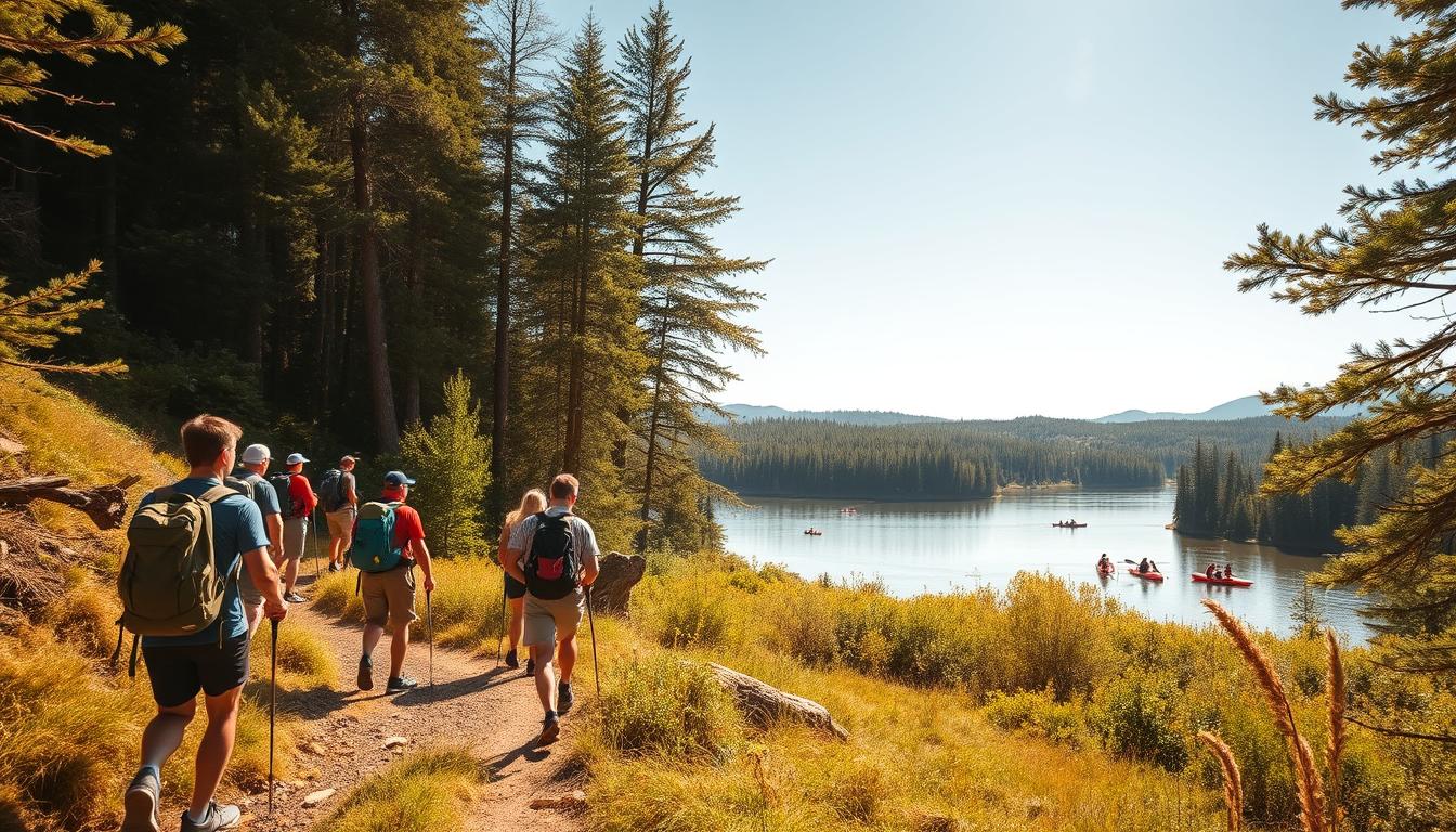 Hiking and biking are excellent for exploring nature and getting fit. Bike riding, for example, can make kids’ hearts stronger by 20%. National and state parks offer camping spots near water, like Lake Tahoe and Lake George.