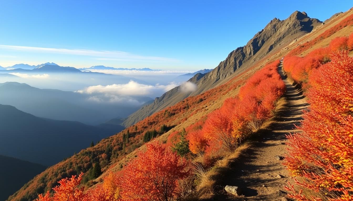 The Kancamagus Highway in New Hampshire is a top spot for autumn hiking. This 34-mile scenic route goes through the White Mountain National Forest. It shows off Eco-Tourism as trees turn red, orange, and yellow. Hikers can choose from easy trails like Sabbaday Falls or challenging ones like Mount Chocorua, offering amazing views.