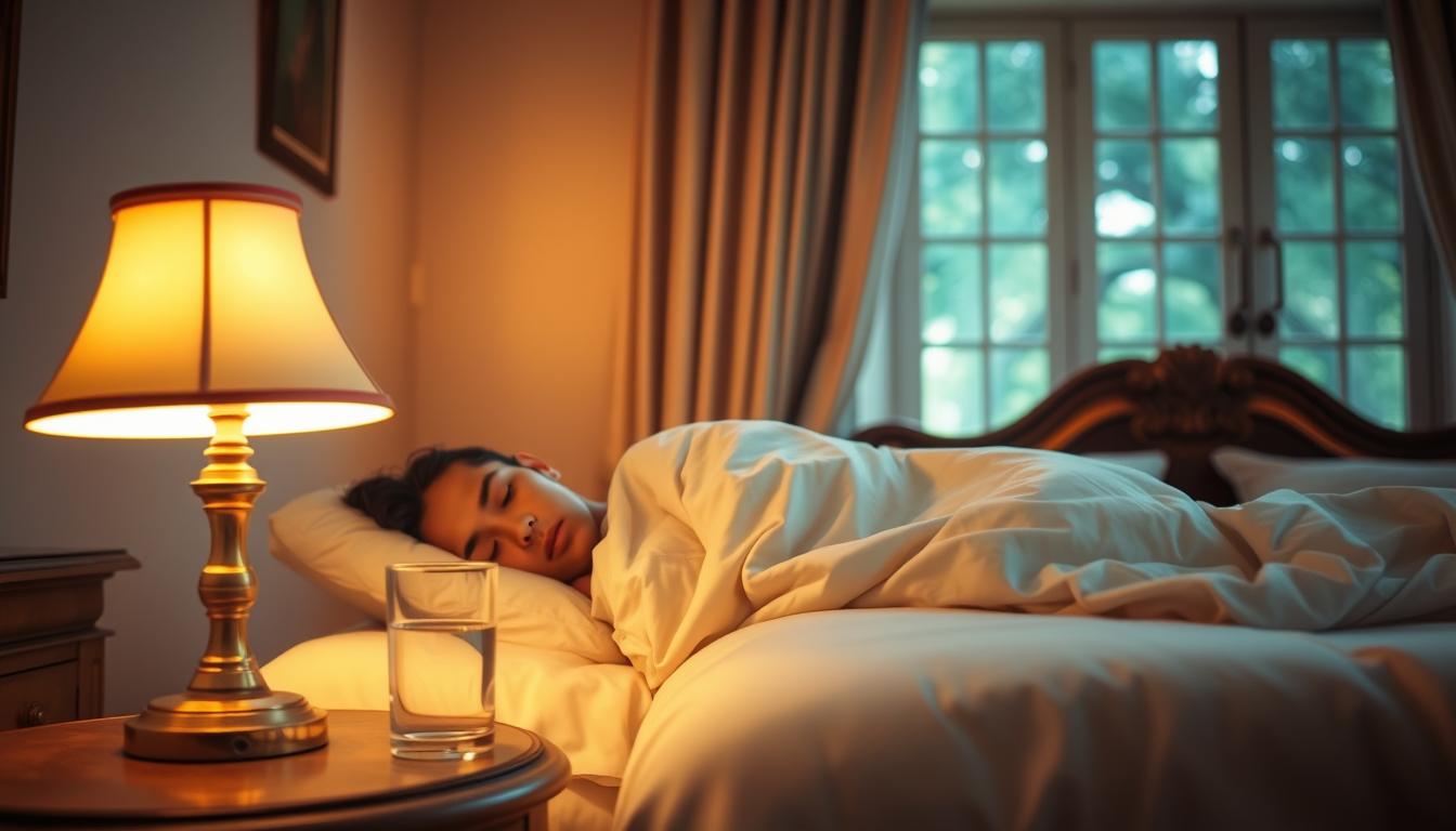 A calming evening routine can lower stress and make it easier to sleep. Try a warm bath, soothing music, or yoga. Light snacks, like fruit or yogurt, can also help you sleep better. A tidy bedroom is key for a good night’s rest.